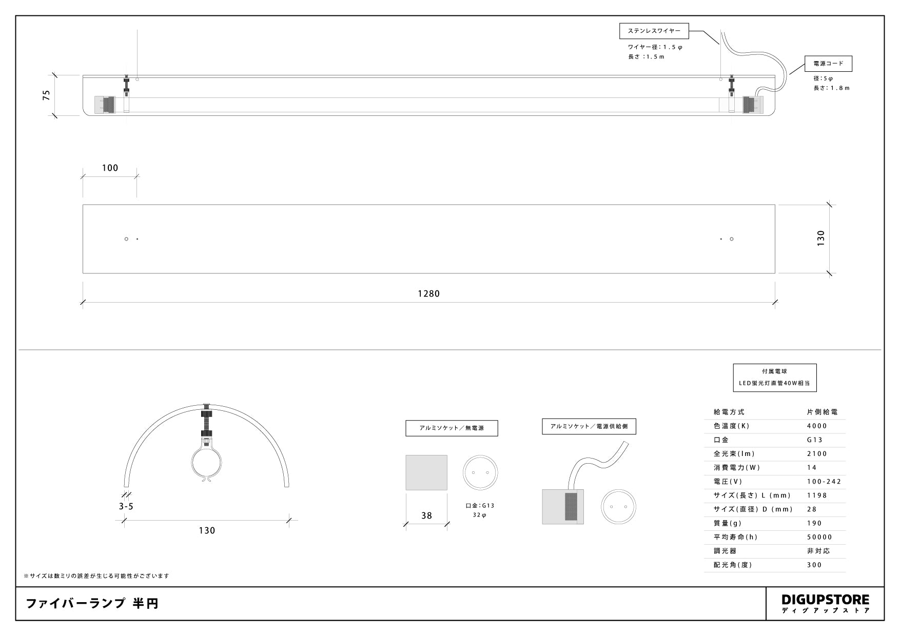 ファイバーランプ 半円