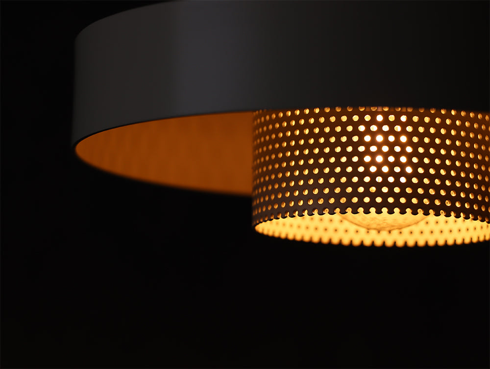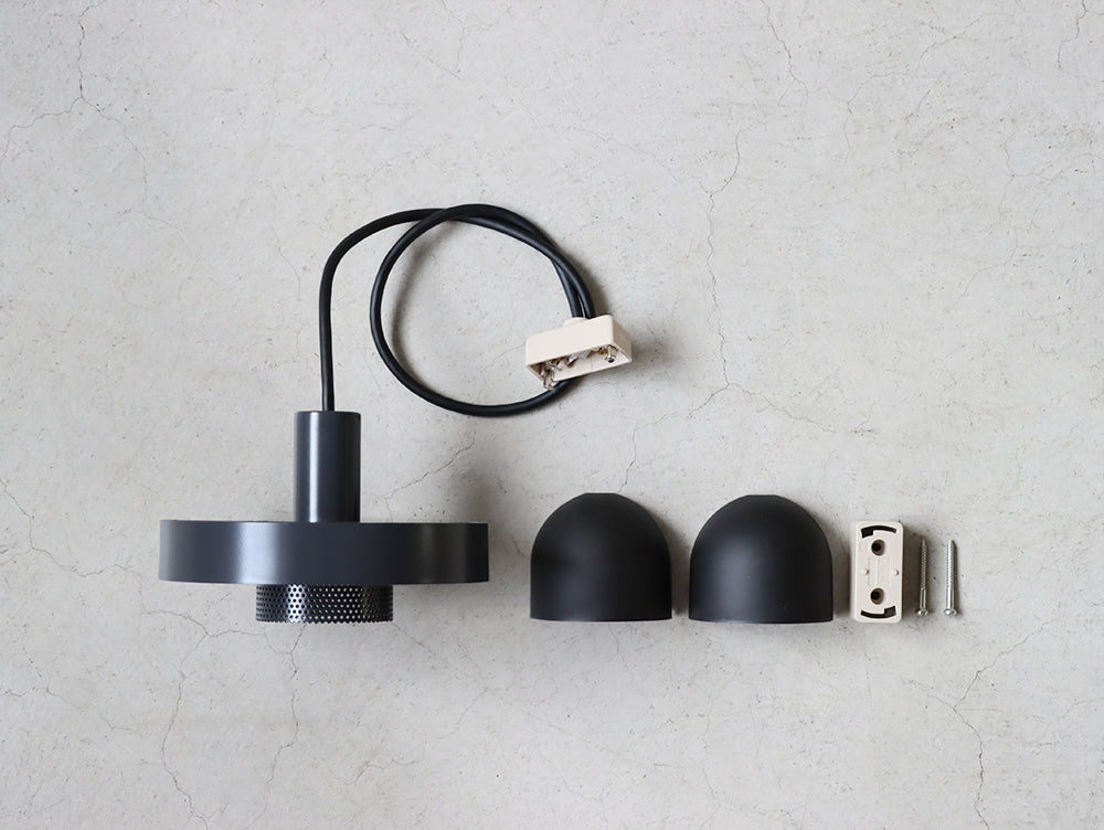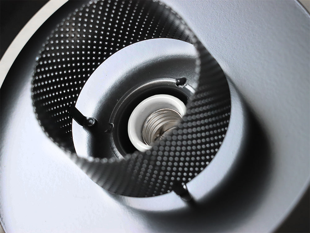 取り付ける電球のサイズによってはパンチング部分から電球が見える場合がありますが、こちらのLED電球を使用すると美しく収まります。