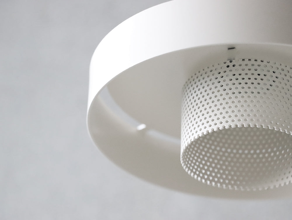 電球を覆う部分には穴の空いたパンチングアイアンプレートを使用しており、適度に光を抜けさせながらも、目眩しさを低減させています。